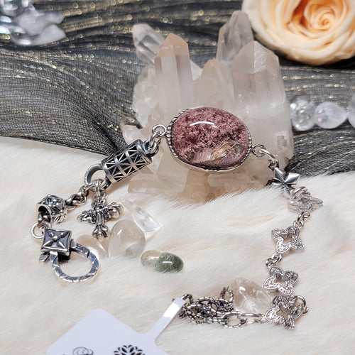 0753 粉幽灵晶中晶S925純銀設計款手鏈