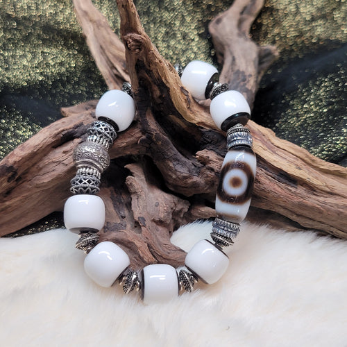 0722 三眼天珠黑白銀多寶手串