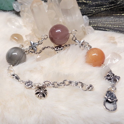 0721 三色兔毛球球S925純銀設計款手鏈