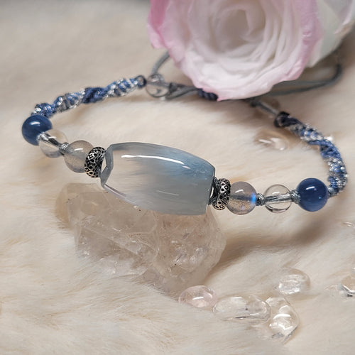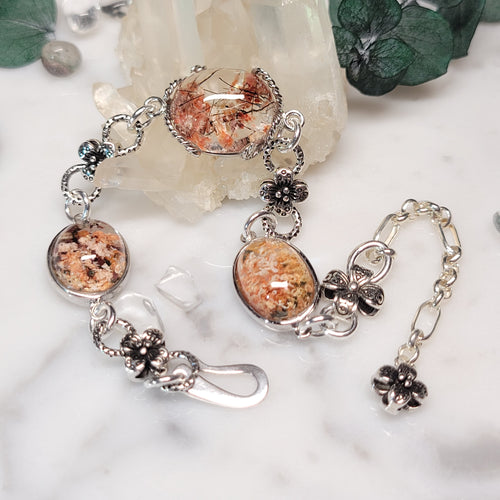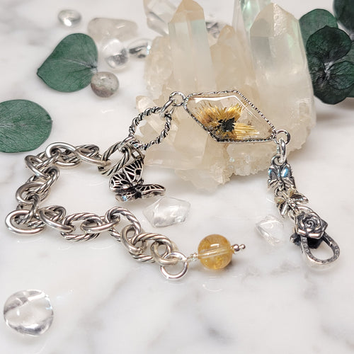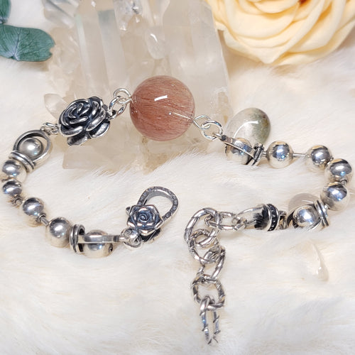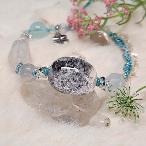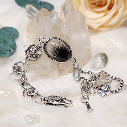 0672 雲母黑超七共生礦2粒S925純銀設計款手鏈