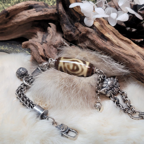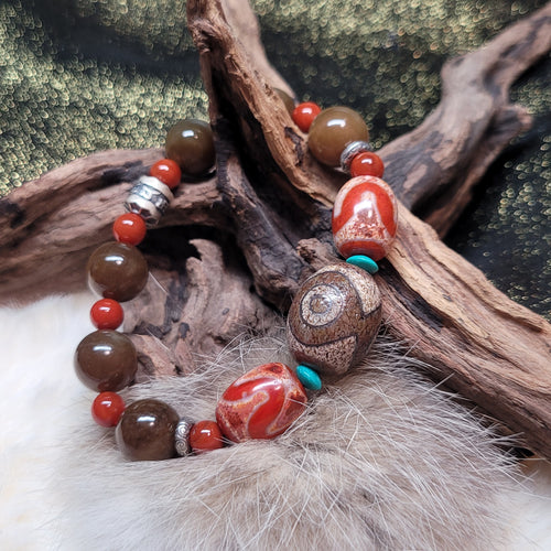 0400 象雄三眼紅白虎牙糖料和田玉多寶手串